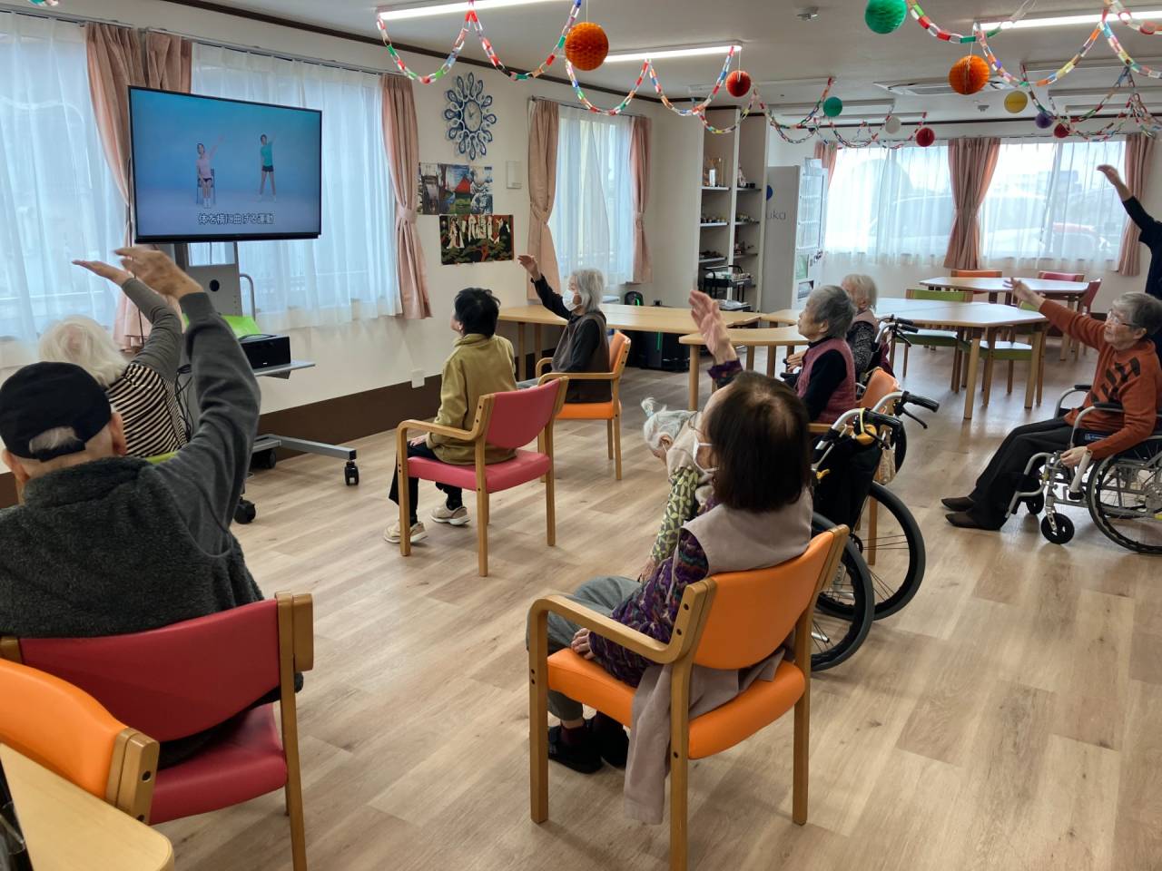 本日の午後からのレクはラジオ体操